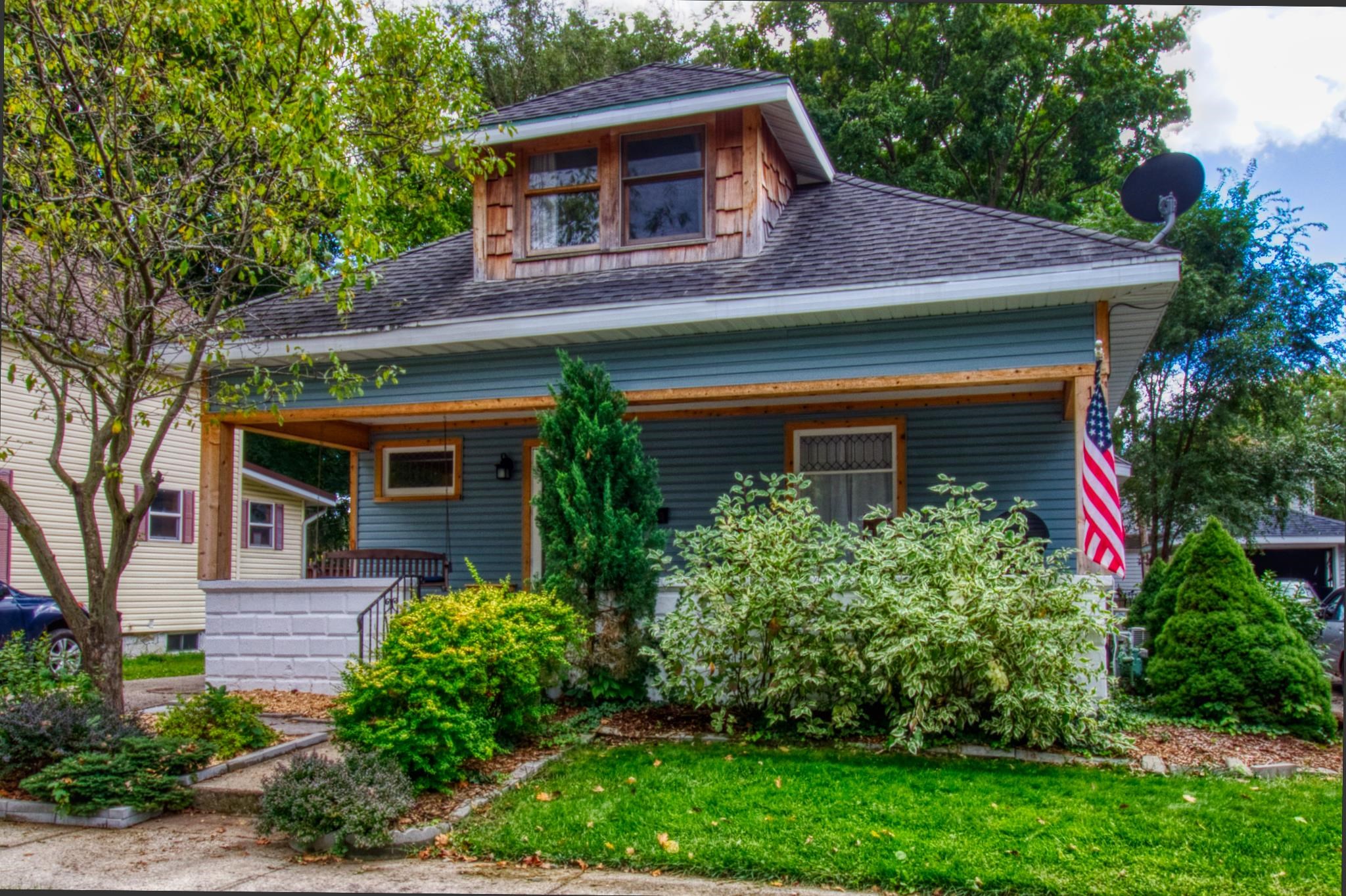 Beautiful, charming home for sale! Lots of original woodwork including hardwood floors, newer kitchen with solid surface counter tops, large open rooms, some newer windows and still a few leaded glass windows, fireplace, partially finished basement, radon system, lots of storage, main floor master bedroom, very nice in town location, large lot, nice back yard and a front porch made for swinging! New siding and cedar accents and the outdoor entertaing area with a new fire pit makes this home a true value! Current owner is using one of the bedrooms as an office. The original doors are in the basement. This is a must see! Make your appointment today!