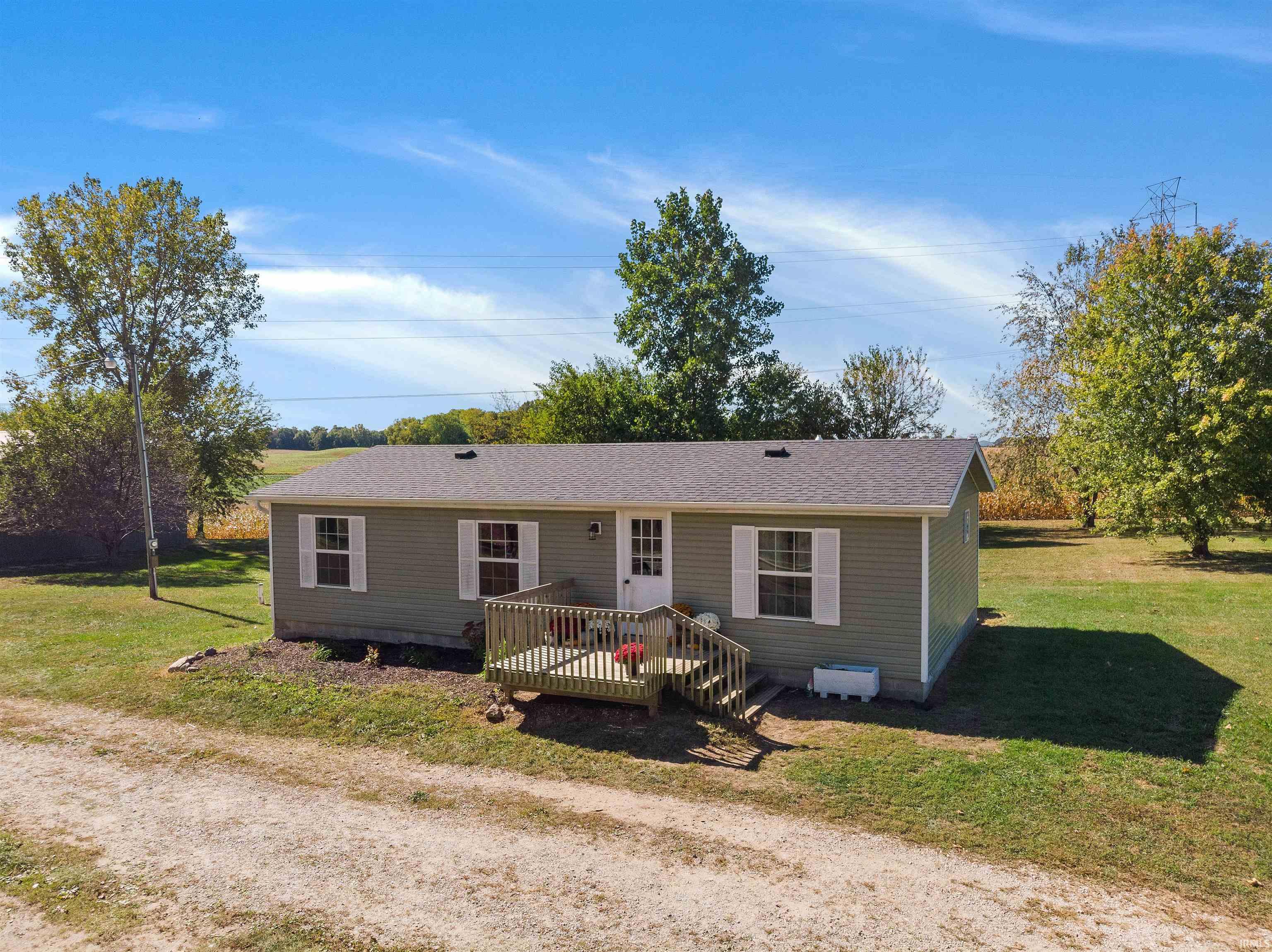 Take me home country roads! Classic style manufactured home in great condition is move-in ready with a 40x60x12 pole barn built in 2021 on 2.53 gorgeous acres! Located less than 10 minutes SE of Pierceton & approximately 15 minutes to both Warsaw & Columbia City, this 3 bedroom, 2 full bath home offers sweeping country views in every direction & plenty of room for all kinds of outdoor activities. Tucked back from the road a curved driveway with 2 entry points has a line of trees along the road providing additional privacy. Charming exterior is vinyl with white shutters & an inviting raised porch with room for decor & sitting. Inside the front door you’ll find a warm & welcoming atmosphere complimented by earth tones & a cozy front living room on carpet that gets lots of natural light. 2 arched entries link eat-in kitchen through a blue accent wall on tile flooring. Kitchen has abundant cabinetry, some SS appliances & view of back yard. Laundry/utility room off kitchen also has door to ultra private raised back porch—the perfect spot for kicking back, relaxing & enjoying the fresh air & scenic nature vistas. Comfortable primary bedroom includes en suite bath with modern vanity & tub/shower combo. Remaining 2 bedrooms are good sized with ample storage throughout. Main shared bath also has a tub/shower. Large pole barn has enough space for all your tools & toys plus machinery &/or vehicles according to your needs. Currently has a dirt floor that can be finished as desired. There’s even a covered porch on the pole barn! Just imagine lounging in the shade & watching the seasons change or roasting marshmallows in your big back yard! Excellent spot for those looking to get away from the hustle & bustle of city life without the added hassle of a super long drive to local amenities—you can have the best of both worlds! Don't hesitate to reach out, this one won't last long!