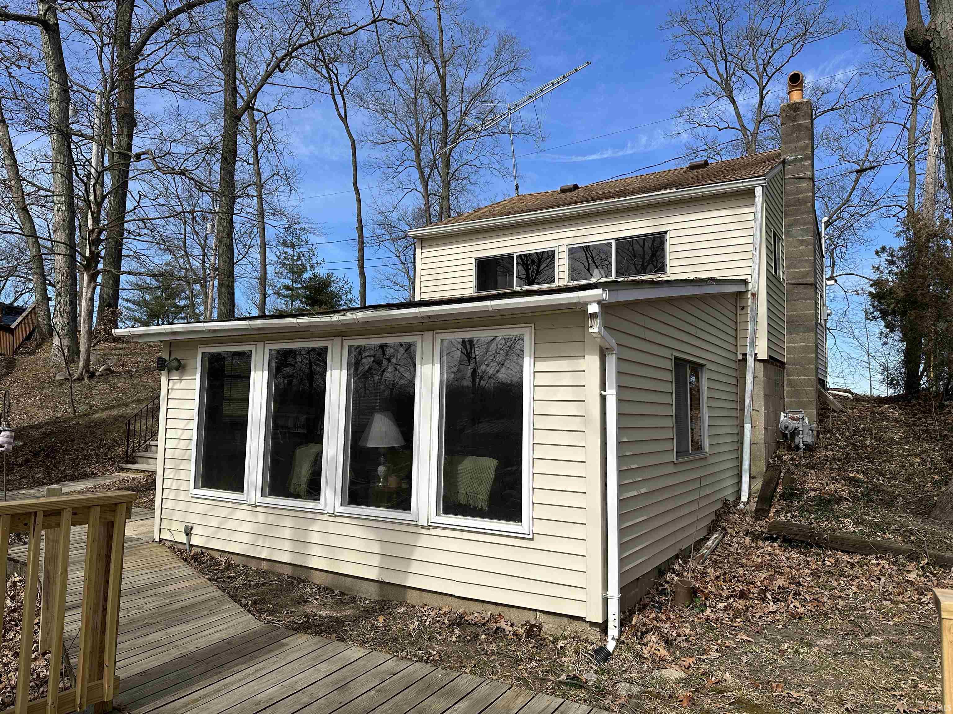 Vintage fishing cottage on the beautiful Lake Papakeechie (Wawasee adjacent). Perched high upon the peninsula with a gorgeous view and 50 feet of lakefront. If you want to ski, just rent a boat slip on Wawasee just down the road! Enter this cottage on the lower level, into a nice sized living room with four windows overlooking the lake. The kitchen is large enough for more than one cook with appliances staying. Three bedrooms are located upstairs (one is a pass through to the other two) and is currently set for sleeping 7, so bring your family and friends this summer. Outside, are two wooden decks, one is extra large and has the best view to enjoy the peaceful scenery. Part of the way down the wooden stairs is a fire pit, and further down is an 8x12 shed to store all of those fishing and swimming items with easy access to the water. A pier and simple fishing boat stay with the property. Lake Papakeechie is a no-ski, non-motorized craft, beautiful fishing lake. Selling with all furnishings. Bedrooms do not have closets except for one very small one. Living Room space holds a dining table and chairs. Great Place to Get-A-Way and Enjoy the Lake. Accepting offer thru 3/15/23. Septic tank was pumped in 2021 by Strombeck, N. Webster. 100 Amp electrical panel with copper wiring. Visible water lines are copper, water lines are PVC. 100,000 BTU American Standard Natural Gas furnace.
