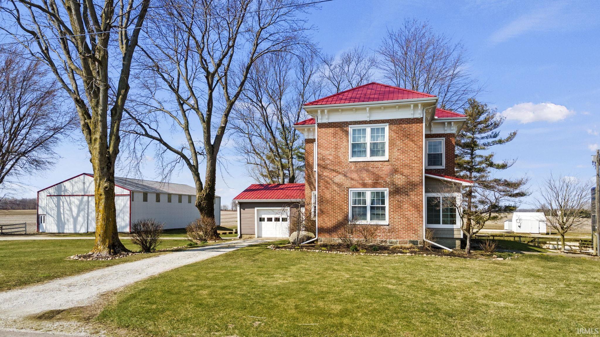 A renovated farmhouse with numerous updates and upgrades throughout. Sitting on a rural 1.89 acre parcel. Where you will appreciate being surrounded by farm ground. The country life welcomes you to this spacious home. With over 2,000 finished. sq. ft. of living space, an attached garage plus a 40x80 outbuilding! The brick exterior showcases the historic charm and character and is complimented by a metal roof. Step inside the enclosed porch and into the living room. At the front of the home, surrounded by plenty of natural light and surrounding farm land. Just down the hall, the formal dining room with beautiful hardwood floors and adjacent kitchen. Newer laminate floors installed to match the modern farmhouse decor. Bright white cabinetry, stainless appliances, breakfast bar and custom barn door and live edge slab. Tucked behind the barn door is the laundry room. The kitchen also offers access to the back yard deck through the sliding glass doors, where you can enjoy spending time outdoors, or and seeing wildlife activity. Conveniently located on the main level is a bedroom and full bath, with the second and primary bedroom upstairs. A beautiful staircase in the main level leads you to the second level loft. Where the walk way gives you access to the spacious bedrooms and oversized bath. Designed to match the homes charm, this bathroom offers a double sink vanity with copper bowls, standup shower and a clawfoot tub. Schedule your private tour to see all that this beautiful home has to offer!