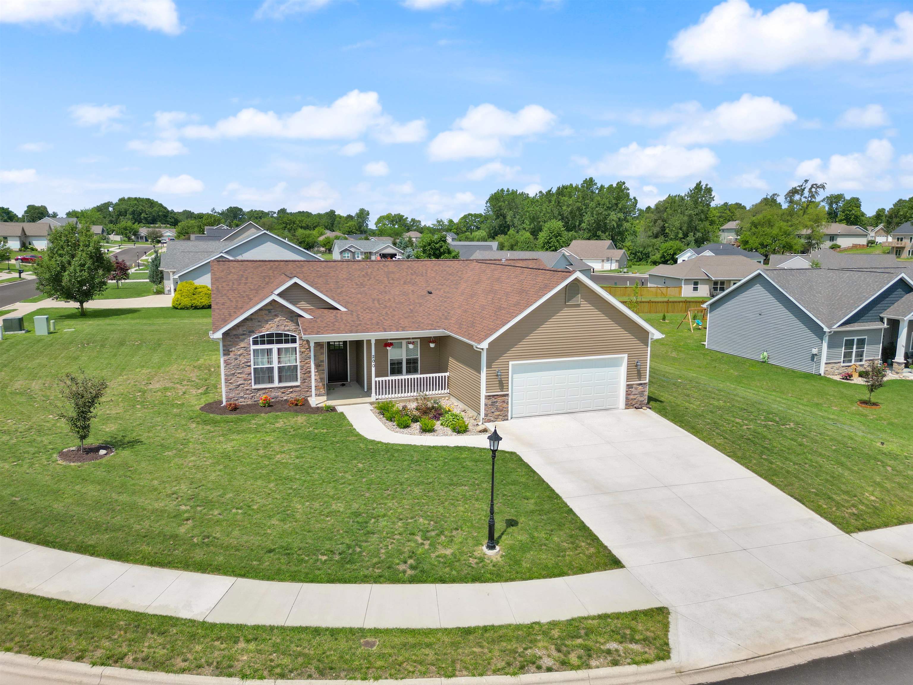 Coming Soon! This ranch home offers just under 1600 sq ft of living space and boasts open concept living with the split floorplan. There are 3 bedrooms and 2 baths as well as an additional flex space of an office to work from home or a 4th bedroom off the great room. Coffered ceilings and beautiful kitchen provide lots of space for entertaining. The windows fill the space with natural light and the vinyl wood flooring enhances the space even further. Bedrooms are all nice sized and the 2nd bedroom even has vaulted ceilings. The primary suite has a great size accented also with coffered ceilings and an efficient and spacious primary bathroom completes the suite. The laundry room is just off the great room as well. There is a 2.5 car attached garage and you will find the front porch very welcoming as you walk up to the front door. This home is hardly lived in.