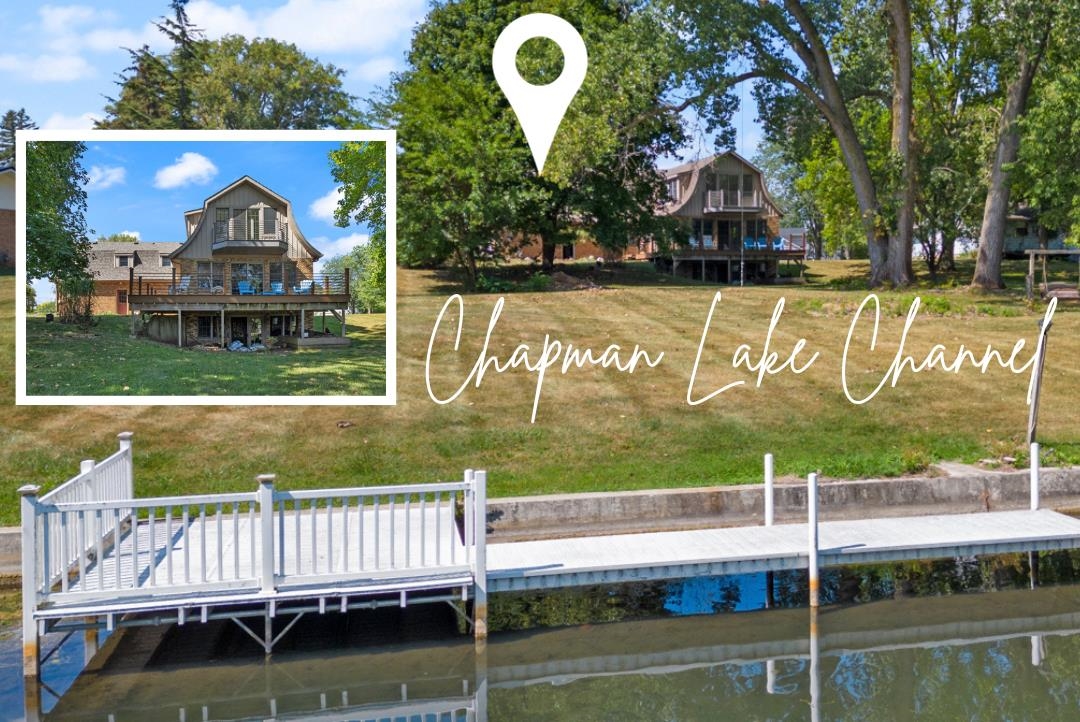 Pending - accepting back up offers. Beautiful Big Chapman channel front property with 225 feet of channel frontage. The property is on a mature lot with mature trees and over an acre bordering chapman channel. The kitchen was recently updated with custom cabinetry and granite countertops and opens to the great room with an oversized composite deck attached that wraps around the front side of the home facing the channel so you can spend your time enjoying the lake. All of the stainless steel appliances remain with the property as well. An additional living room with a fireplace and a half bath is also on the main level. On the upper level, you will find 2 ensuites with walk-in closets. The primary suite has a double vanity, jet tub, and a separate custom time walk-in shower with multiple shower heads and a large walk-in closet. The guest ensuite has great natural light and a nice size walk in closet. There is also a 3rd bedroom and a hall bath as well as a laundry room. The walk-out lower level has lots of opportunities to finish as you desire. The walls are insulated and ready for drywall and there is already a full bathroom finished and still lots of room for storage. French doors lead out to the lake. There is also a 2-car heated garage. Geothermal and zone heating/cooling with 3 zones will be a great cost savings on utilities. There is a seawall and vinyl pier. Don't miss this opportunity for a beautiful lot and view on one of the all-sports lakes where you can enjoy skiing, wakeboarding, boat rides, and all of your favorite water activities.