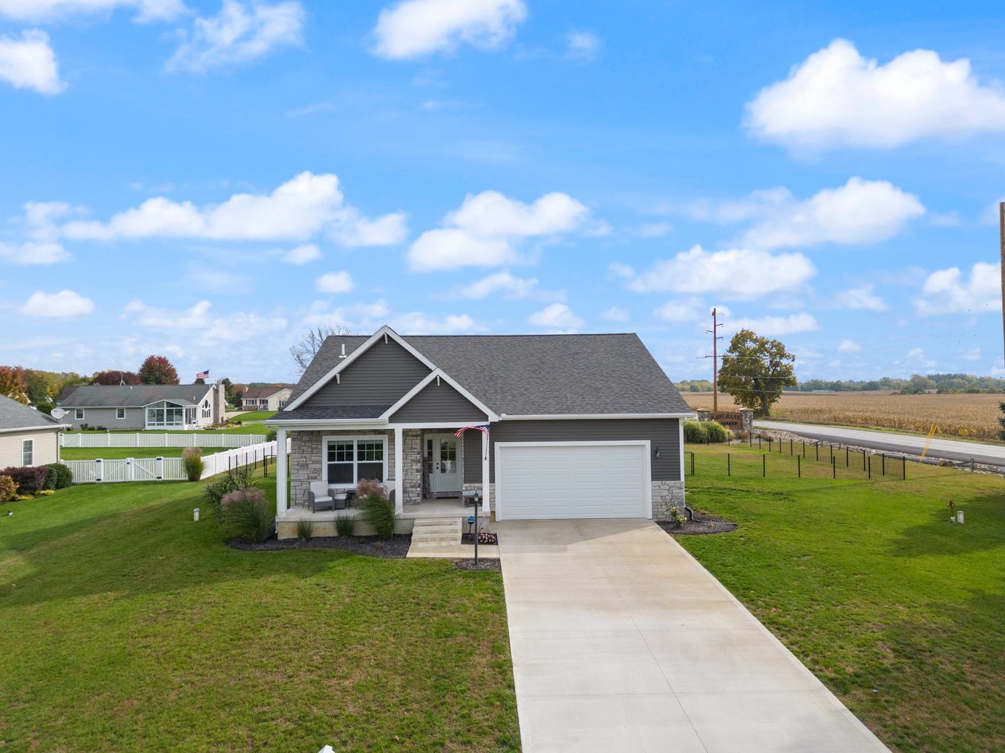 Walk into this move-in ready home. This open concept offers a modern spin on a classic and popular floorplan. This home was built and completed late in 2021 and has 3 bedrooms and 2 baths on the main level and has additional space recently finished in the lower level to offer an additional full bathroom and 2 additional bedrooms making it 5 bdrms and 3 baths total. The sellers have also added a fenced back yard and landscaping as well as a fire pit area since owning this wonderful home. The kitchen is complete with all appliances including the dishwasher, gas range, microwave hood combination and refrigerator. The great room has vaulted ceilings and is open to kitchen and dining area- as well as having beautiful vinyl plank flooring thru out the main living space. The primary suite is off behind the kitchen and provides a tranquil setting for this ensuite. A soaking tub, tile walk in shower and double vanity comlete this ensuite. There are 2 addtiional guest bedrooms on the main level. Downstairs find a family room, game room, exercise room, 2 bdrms with egress windows and a full bath as well as some unfinished area for storage. Move right into this home located in Wawasee Schools District. This home is close to Lake Tippecanoe, North Webster and Warsaw.