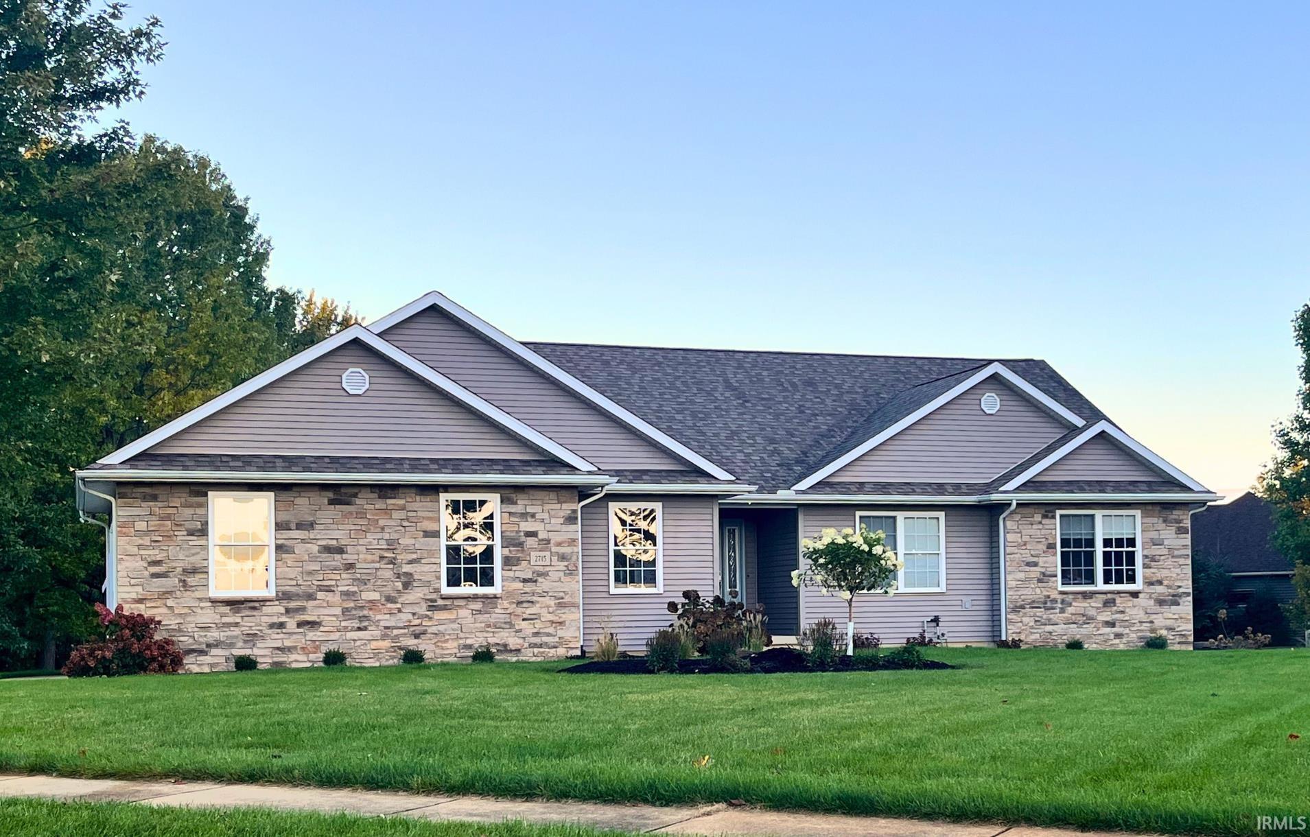 Shadow Lakes....one of the most desired neighborhoods in Warsaw. Where life is enjoyed at home and throughout the common areas. An exciting lifestyle awaits you here. Enjoy the neighborhood pond with picnic area, swimming beach, beach volleyball and private trails. Here, a beautiful, spacious ranch home welcomes you home. Greeting you curbside with a front stone, side-load garage and a corner lot that offers picturesque views of the close by pond. Offering over 3,000 sq. ft. of finished living space with recent updates throughout both levels. From your first step inside, you'll be captivated by the scenic backyard views, ample natural light and vaulted ceilings in the living room. Open to the dining room and nearby kitchen. Upgraded cabinetry and appliances are featured here and convenient access to the laundry room just off the garage. Down the hall, you'll find the primary bedroom with primary en-suite and walk in closet. As well as two additional bedrooms and full bath. The walkout basement features two additional bedrooms, full bath, unfinished storage area and a large family room that leads you the the backyard concrete stamped patio. Additional amenities include new paint throughout, upgraded light fixtures through main living areas, and new water heater, newer R/O water system, newer Rabb water softener, landscaping, newer HVAC, hardwood floors and much more!