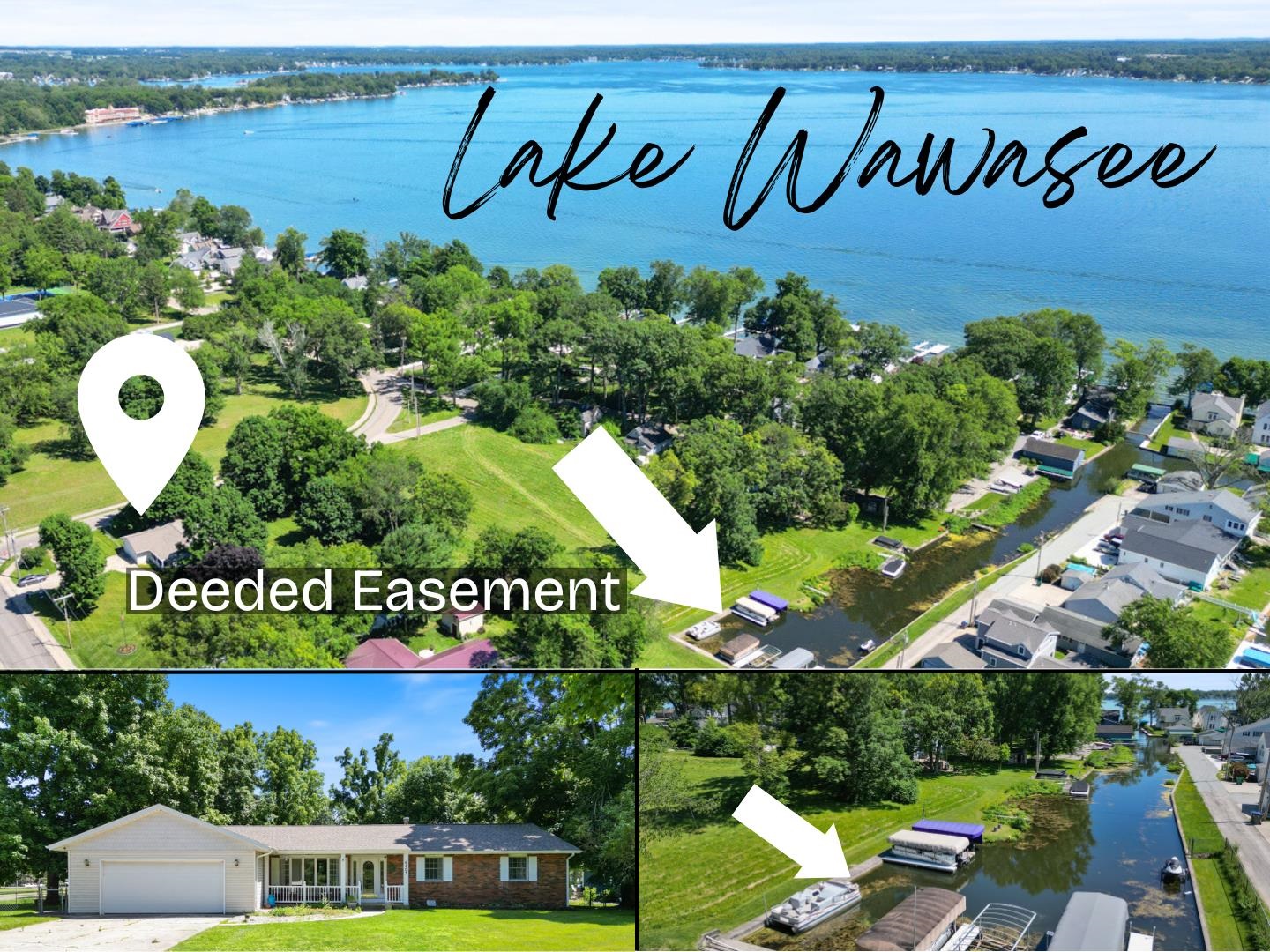 Deeded Easement Access to Lake Wawasee on this Sprawling Ranch in Syracuse! This gem has so much to offer- with the easement just steps from the home as well as a fenced back yard and a large level lot. This home features just under 1700 sq ft of living space on the main level and the mostly finished lower level has additional living space as well. Inside you will find living room open to the dining room and kitchen with a family room tucked in back corner of the home and opens to the outdoor patio. There are 3 bedrooms on this level all filled with natural sunlight and the primary suite is quite spacious and has the bathroom right off of it. The laundry room is also found on the main level and includes the washer and dryer. Downstairs, you will find a second kitchen/bar area that is complete with small fridge, brand new dishwasher and lots of cabinetry and counterspace for entertaining. This pace is wide open allowing space for gaming area, family room/rec room area and additional room with french doors that could be used as an office, work out room, or add an egress window and use it as a 4th bedroom. This home has been a successful short term rental at times as well. Some of the furnishings in the home may be negotiable, seller can be flexible on that excluding a few items. The deeded easement to Lake Wawasee offers space for 2 boats to be parked (39x30) at a dock, buyer would need to purchase a dock, there is not currently one available to use at the location. Lake Wawasee offers all sports lake living, boat to restauraunts, marinas, the sandbars or just cruise around. Wawasee is a very popular vacation destination. Affordable lake living on Lake Wawasee.