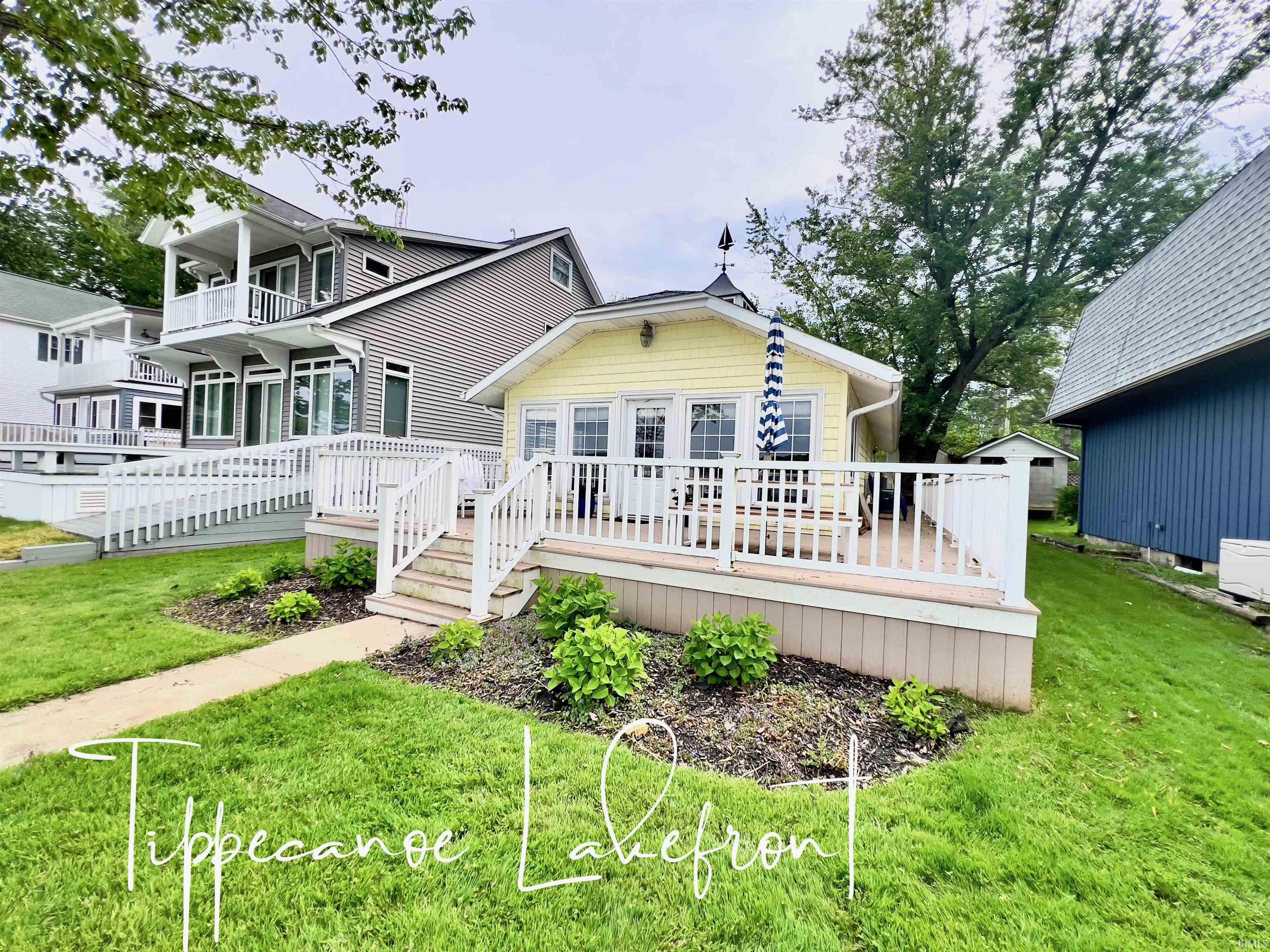 Tippy Lakefront under $550,000? Only here, only now! It's all about the lake in this adorable open concept, 3 bedroom cottage. The extensive pier is waiting for your boat and water toys! Enjoy the sandy bottom close to shore for swimming and lake games, the great sized level lakefront yard, and relaxing on the massive composite decking while sipping on your favorite summer drink and waving to the boats floating by. Step inside to beautifully finished comfort that includes custom kitchen cabinets; granite countertop; stainless steel refrigerator, dishwasher, range, microwave and large sink; stacking washer and dryer; laminate flooring throughout; huge dining room with lake views, panoramic window views from large living room; stylish bathroom with floating vanity and separate shower room with a stunning tiled shower. Don't wait on this rare opportunity to own a lakefront property on this very desirable ski lake