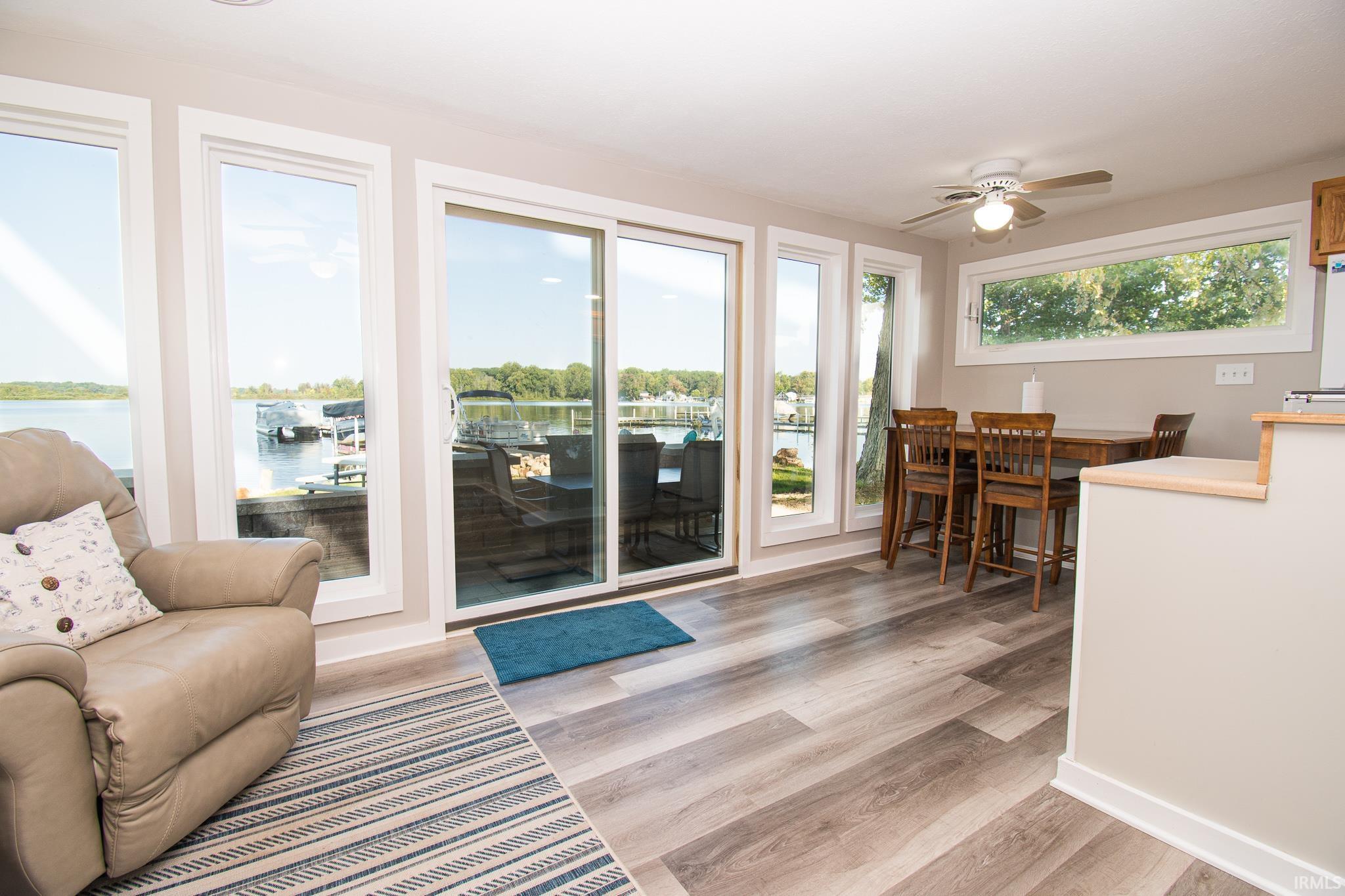 Welcome to your new lakefront haven, a cozy lake front gem that offers the perfect blend of charm and modern convenience. This delightful two-bedroom, one-bathroom lake house is a dream come true for those seeking tranquility and natural beauty. With it's shared access to the lakefront and an impressive 60 feet of channel frontage, this property promises a delightful waterfront lifestyle. Step inside and be amazed by the tasteful upgrades and meticulous remodeling that have breathed new life into this cozy abode. The recent renovations include brand new flooring throughout the living room, kitchen and full bathroom, modern bathroom fixtures, a new water heater, and an upgraded well pump, ensuring your comfort and peace of mind. Enjoy the open-concept layout that seamlessly integrates the living, dining, and kitchen areas, creating a spacious and inviting atmosphere. Large windows bathe the interior in natural light and offer stunning views of the serene lake, bringing the outdoors in and making every day feel like a vacation. The living area is perfect for relaxation or entertaining, with easy access to the outdoors where you can enjoy your morning coffee or an evening sunset on the deck. The two cozy bedrooms provide comfortable retreats, each thoughtfully designed to maximize space and comfort. The bathroom is elegantly appointed, offering a relaxing space to unwind after a day of lakeside fun. Outside the property, the features include a 8X10 shed with power, lights, and outlets, A large dock, ideal for fishing, kayaking, or simply soaking up the beauty of your surroundings. With its idyllic setting and charming design, this lake house is the perfect spot for making memories with family and friends. Embrace a lifestyle of serenity and adventure in this exceptional lakeside escape which is part of the Barbee Chain of Lakes that is home to 7 interconnected lakes that total more than 738 acres.