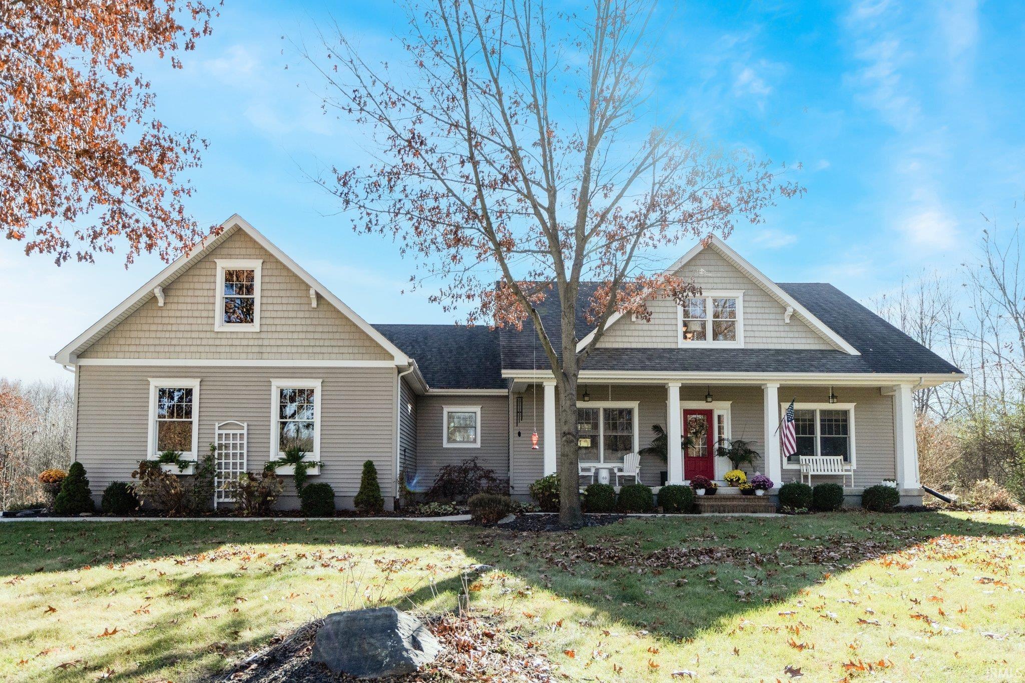 Nature lover's paradise!!! Is this what you are looking for? This home sits on 7 acres and has a long winding tree lined private drive with plenty of yard space and trails through the woods for walking or riding a four wheeler. This 4 bedroom, 2 1/2 bath home has 2,369 finished square feet on the main level. Living room has vaulted ceilings with a gas fireplace and plenty of windows to bring in the natural light. Step into the eat in kitchen with custom cabinets, quartz counter tops, breakfast bar and a built in desk. Just off the kitchen is a hall that leads to the spacious primary suite. The primary bath has dual vanities, 2 separate walk in closets, jetted tub and a separate shower. Laundry room, and half bath are also located off the kitchen. On the other side of the house you will find 3 more bedrooms and a full bath. Off the kitchen and front entry is a dining room that is being used as a sitting room. The walkout unfinished lower level is waiting on you to finish it off the way you want it. It is plumbed for a bathroom and it has an unfinished safe room in basement with 12" thick walls. The main level has a door that leads up to the unfinished attic that is plumbed for a bathroom and heat and electrical is already in place. Covered back porch that connects to the large deck that overlooks the 29' above ground pool with a new pool liner and filter replaced a year ago. Home has a whole house perimeter drain, sump pump and a Kinetico reverse osmosis system. Internet is Kosciusko Connect. Oversized 2 car attached garage. If that is not enough you will love the large insulated outbuilding that has a wood stove to keep it heated and it also has 100 amp service.
