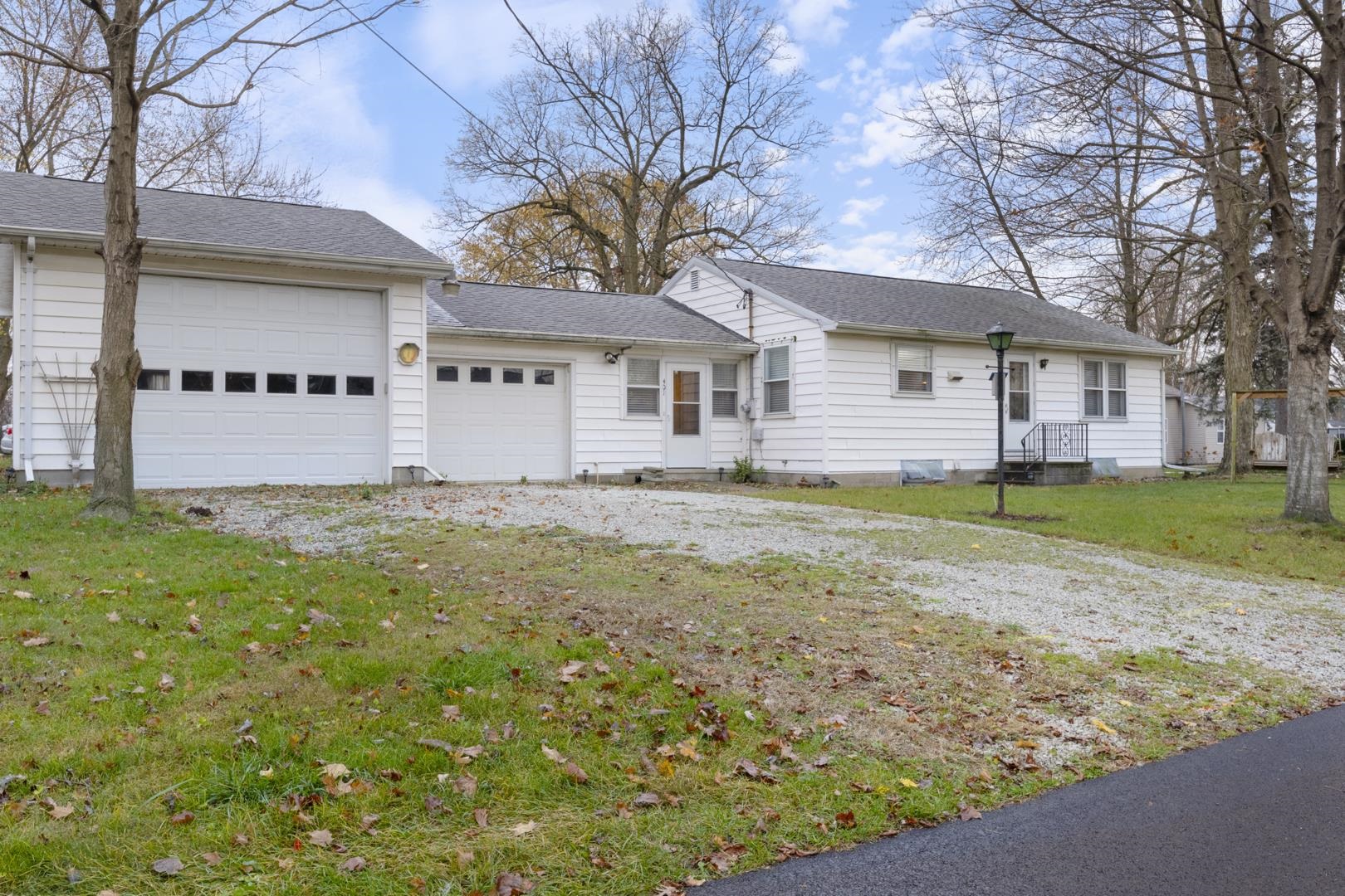 Welcome to the best of small-town living with this delightful 2-bedroom, 1-bathroom single-story home in Akron. Walking distance from dining, shops, and a grocery store, this home offers the convenience of town life while maintaining its cozy charm. As you enter, you're greeted by freshly refinished original hardwood floors that flow throughout the spacious living room. Adjacent to the living room is the kitchen, featuring a unique brick-style accent wall, adding character and warmth. Whether you embrace its current charm or update it to your taste, this kitchen is the perfect blank slate. The spacious flex area offers additional space for a drop zone, laundry, or can easily serve as an extra living area, depending on your needs. Two comfortable bedrooms and a well-appointed bathroom round out the cozy floor plan. For additional storage, you’ll appreciate the full block wall basement and two adjoining garages. Even more storage can be found outside in the shed. The main living areas, including the bedrooms and bathroom, have been freshly painted and are move-in ready, making this home ready for its new occupants. With its prime location and thoughtful layout, this charming Akron home is ready for you to call it your own!