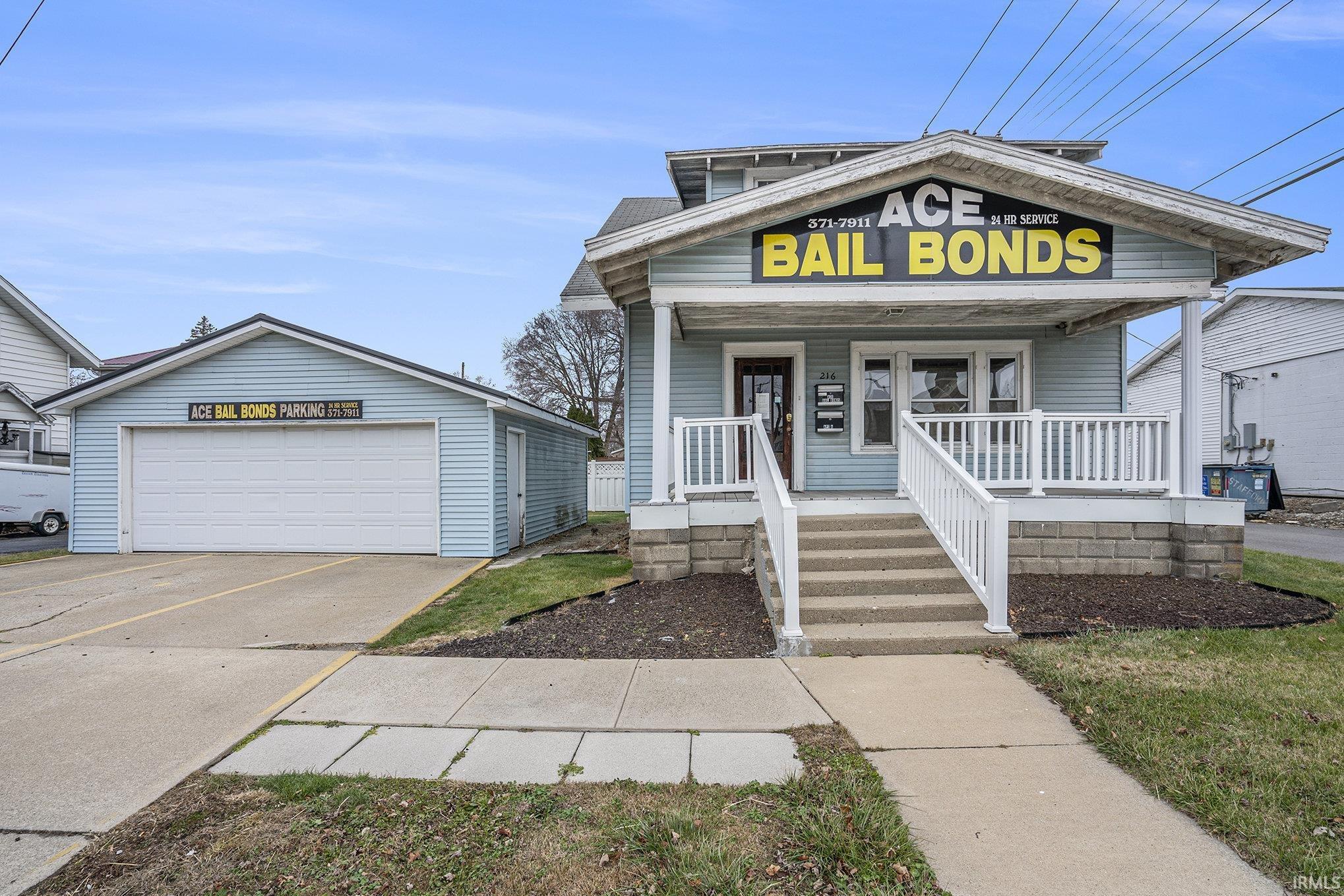 Awesome location for an office and you could rent the upstairs, zoned R3. If you want to make it your home, just a few minor changes and move right in BEAUTIFUL hardwood flooring adorns the upstairs and most of the main level. Gorgeous wood staircase in the foyer/entryway! The upstairs has 1 bedroom with a walk in closet, large bath, living room with a large closet and the fully appointed kitchen has a large pantry. The office on the main level has it own entry, hardwood flooring, toilet/sink, kitchen area, 3 rooms/offices. The lower level is partially finished. Home also has a 2 car detached garage.