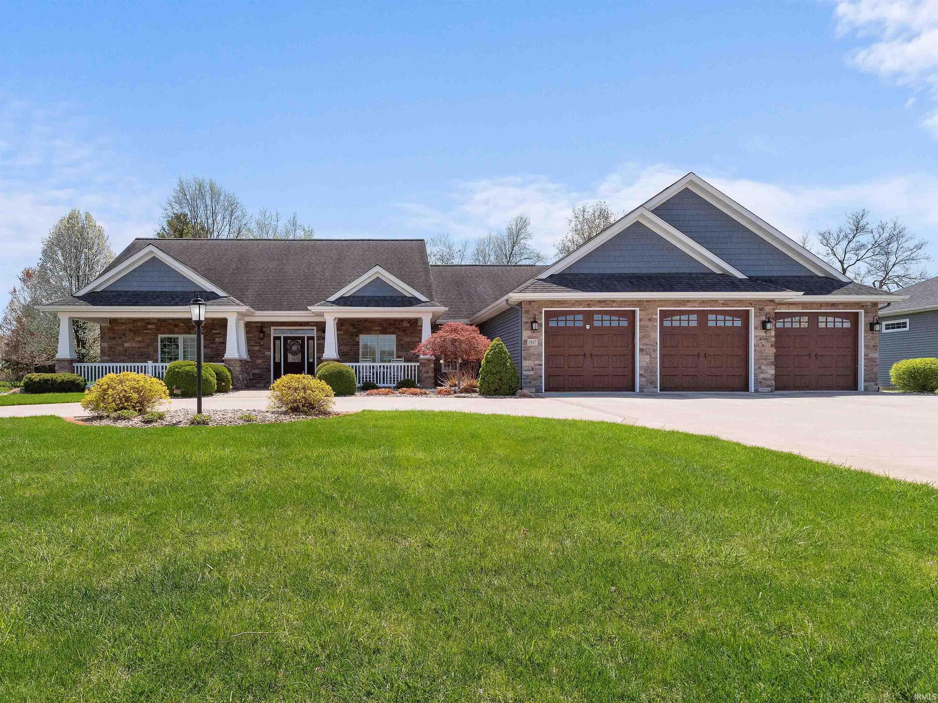 Absolutely dreamy ranch, gorgeous & completely move-in ready boasting a cheery sunroom overlooking idyllic back patio, split bedroom floor plan, open concept layout & many ADA features (wide doorways for wheelchair access)—what’s not to love? Located in quiet & peaceful area of Cherry Creek just off S Packerton Rd, this stunning 3 bed, 2.5 bath home is nestled on generous 0.46 acre lot w/ horseshoe drive w/ space for extra parking in addition to oversized attached 3 car garage. Sure to charm from moment you arrive, attractive exterior presents curb appeal w/ mixed textures, brick facade, professional landscaping (w/ irrigation system) & inviting covered front porch w/ swing & room for relaxing. Impressive main entrance w/ beveled glass, matching sidelights & transom window opens to bright & welcoming atmosphere complemented by luxury wood flooring, neutral color palette, high ceilings (vaulted & 9ft) & plenty of natural light w/ built-in blinds! Built in 2012, it's been impeccably maintained from outside in w/ obvious pride of ownership. Half bath & home office just off foyer. Head on back to majestic main living space w/ cathedral ceiling, serene back yard views & gas log fireplace. Fantastic eat-in kitchen separated from living by half pony wall allowing everyone to maintain contact. Chef’s delight kitchen has everything you need w/ granite counters, abundant cabinetry, SS appliances, walk-in pantry & breakfast bar separating kitchen from dining where you can enjoy meals in front of sliding glass doors to walk out patio. Bonus fridge/storage/mudroom off kitchen beside garage access & laundry room w/ build-ins. Amazing all seasons room off dining offers panoramic back yard views w/ tile flooring. Big primary bedroom off kitchen has en suite bath w/ dual sink vanity, jetted soaking tub, walk-in shower & walk-in closet. Remaining 2 bedrooms are both comfortably sized, in a separate hallway & share a jack n jill bath with dual sink vanity & tub/shower combo; ample storage throughout. Wonderful back patio is oversized w/ pergola & lots of room for relaxing, lounging & making the most of the beautiful spring weather. Expansive yard means tons of space for all kinds of outdoor fun & activities. Prime location close to nearby walking trails, mere minutes from Village at Winona & Winona Lake, shops, restaurants & schools w/ easy access to shopping, dining & groceries. Ready to have the best summer of your life from the comfort of your new home? Take action today!