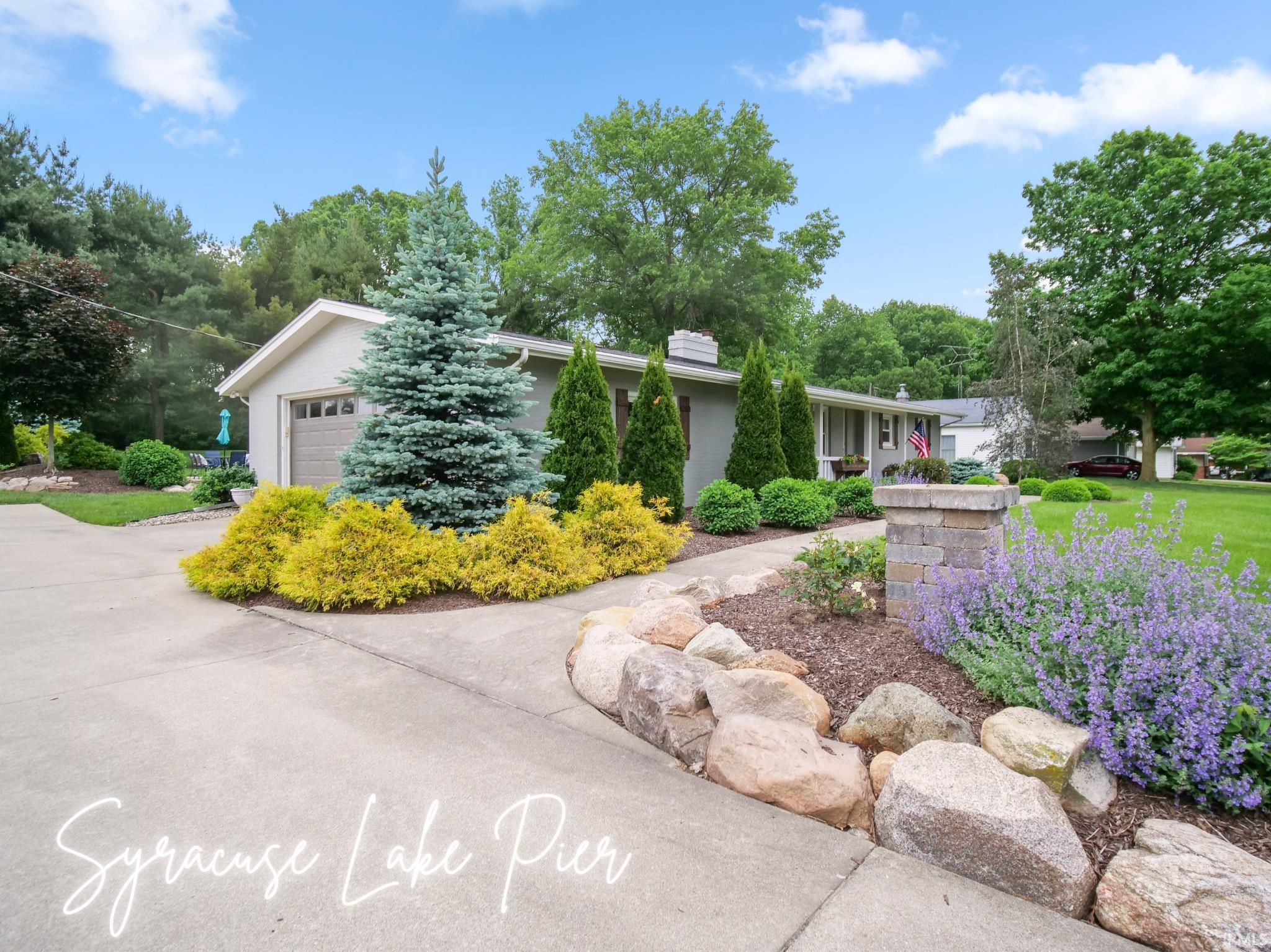 Experience turnkey lake-area living in this beautifully updated, fully furnished home on desirable Northshore Drive. This impeccably maintained ranch offers a rare combination of style, comfort, and convenience—all just steps from deeded access to Syracuse Lake. Set on a double lot with lush green grass, vibrant landscaping, and a large concrete drive, the property offers outstanding curb appeal. Inside, you’ll find a spacious and thoughtfully designed layout featuring three bedrooms, one full bath, and one half bath. The updated eat-in kitchen flows into the dining area, perfect for casual meals or entertaining. Two cozy living spaces—one on the main level with a fireplace and another in the finished lower level—give you flexibility for relaxing or hosting guests. Step out back to enjoy the new patio overlooking the scenic golf course—ideal for outdoor dining, weekend gatherings, or simply unwinding in privacy. The home includes deeded pier access to Syracuse Lake, shared with 4 home owners, with an 8-section pier ready for your boat lift. See location in attached documents! The Syracuse-Wawasee Trail, located just across the street, invites you to explore the area's natural beauty by bike or on foot. Recent upgrades include a new kitchen, windows, flooring, paint, patio, garage door and opener, water heater, whole-house generator, iron filter, lighting, landscaping, and more—delivering move-in-ready peace of mind. Whether you're seeking a stylish primary home, a low-maintenance weekend escape, or an executive retreat, this property offers the best of lake life without the high lakefront price tag.