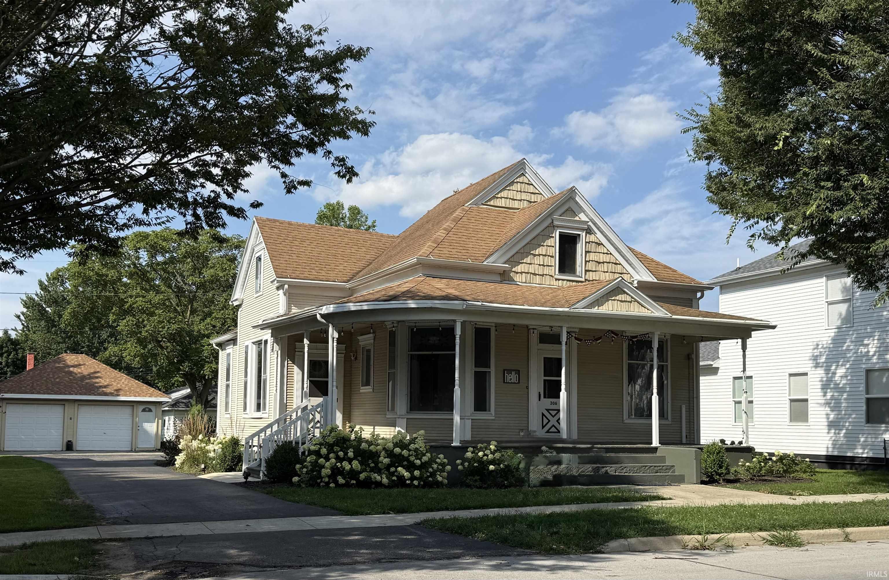 Charming & Updated 3-Bedroom Home with Timeless Character! Listed on the National Register of Historic Places. Welcome to this beautifully preserved yet modernized 3-bedroom, 1-bath home in the heart of Akron! Originally renovated for a coffee shop, this charming property is ready to be home again, or perhaps your next business venture. The wraparound porch, exquisite woodwork, and stunning stained glass windows make a lasting first impression. Inside, you'll find soaring ceilings, a spacious lower level with original hardwood floors, perfect for entertaining, and a fully remodeled bathroom, featuring a tile surround shower. Ample storage at the upper level with large upstairs closets, and the high-quality craftsmanship throughout adds warmth and character. Plus an unfinished attic space that can be converted into finished additional living space. Major system upgrades ensure long-term durability with low maintenance. Outside, enjoy a paved driveway, a detached 2-car garage, and a home that's move-in ready. Located in the vibrant town of Akron, this property offers the perfect blend of small-town charm and modern convenience.