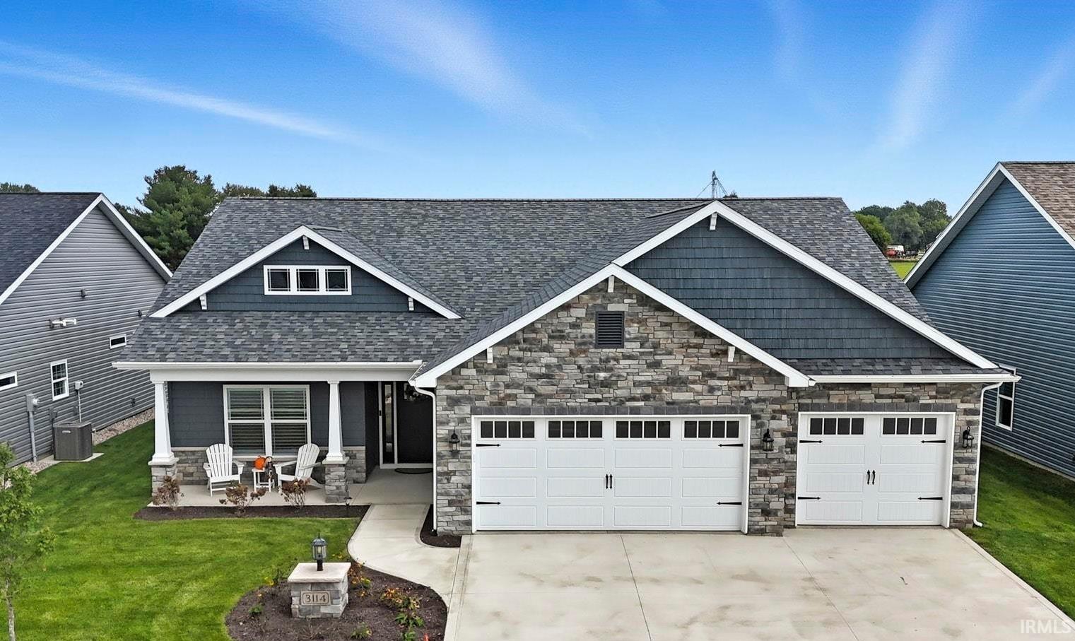 Welcome to this stunning, newly finished, "Majestic Homes" built ranch home in the highly sought-after Raccoon Run Subdivision of Winona Lake. Offering 2,033 sq. ft. of thoughtfully designed living space, this 3-bedroom, 2-bath residence blends modern style with everyday comfort. The open-concept floor plan showcases luxury vinyl plank floors, a spacious living room with custom built-ins, a tray ceiling, and abundant natural light. The designer kitchen is a true centerpiece with dual-toned cabinetry, upgraded appliances, generous counter space, and a breakfast island perfect for casual dining. A nearby dining area flows into the sunroom and out to the screened-in porch and footered patio—ideal for both entertaining and relaxing. The split-bedroom layout ensures privacy, with the primary suite tucked away to one side. Here you’ll find a spa-like en-suite with a double-sink vanity, tiled walk-in shower, and a large walk-in closet that connects directly to the laundry room and mudroom. Additional highlights include a 3-car garage, upgraded finishes throughout, whole yard irrigation, solid core doors, crown molding, In-Line clear drinking water systems, and an unbeatable location—just minutes from US 30, Grace College, the Winona Lake Trails, and the Village at Winona.